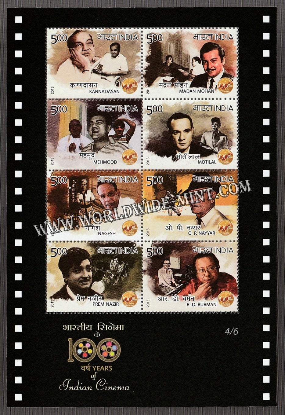 2013 INDIA 100 Years of Indian Cinema-4/6 Sheetlet