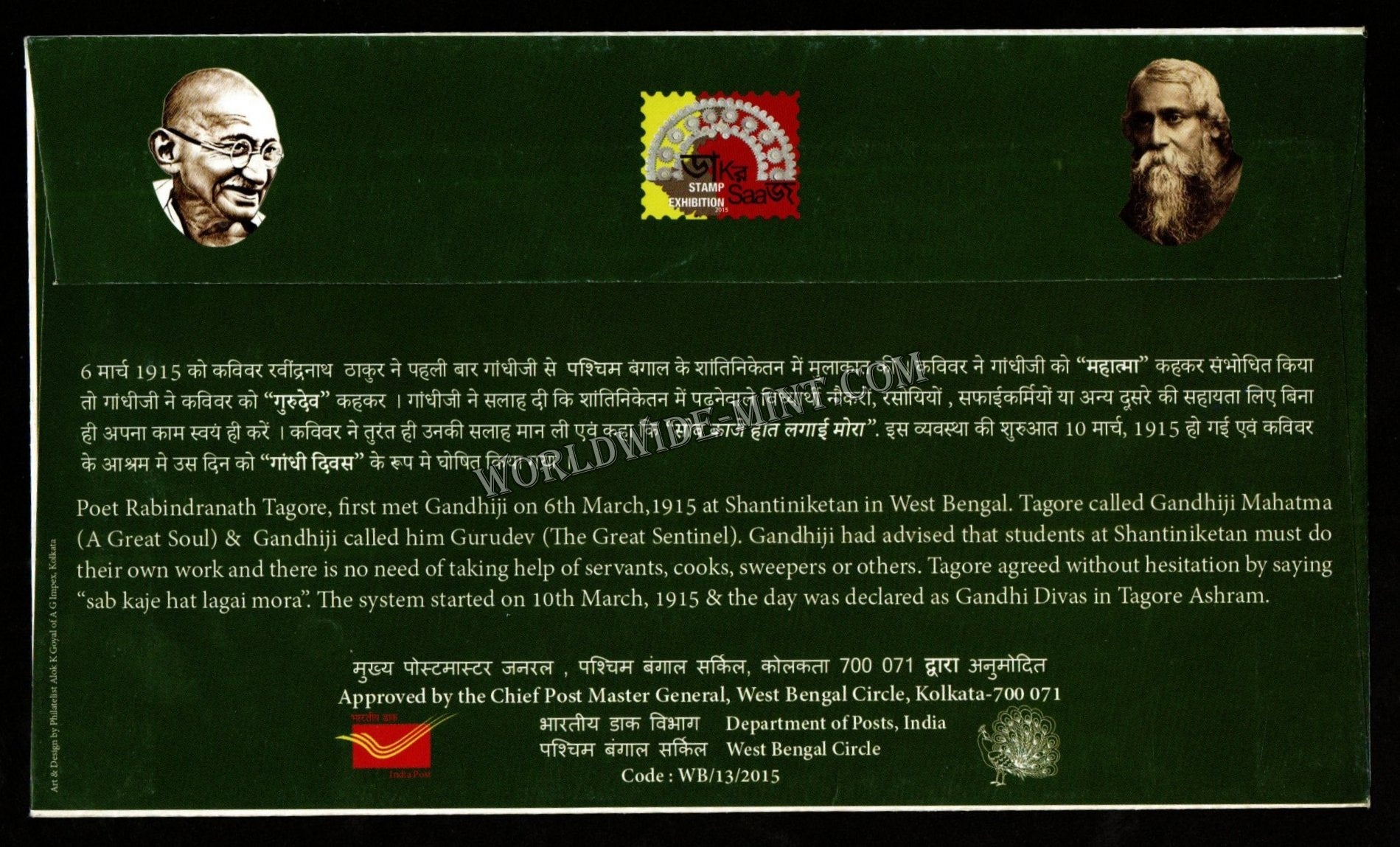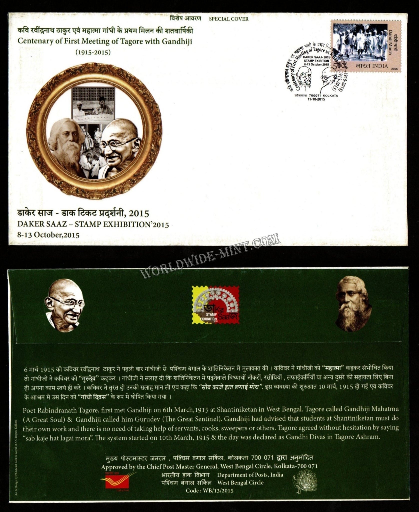 2015 Centenary of First Meeting of Tagore With Gandhiji Special Cover - Glossy Finish (11.10.2015) #SC-374