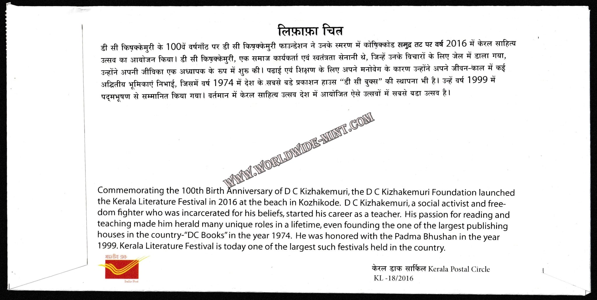 2016 KOTTAYAMPEX Kerala Literature Festival Special Cover #SPL-385