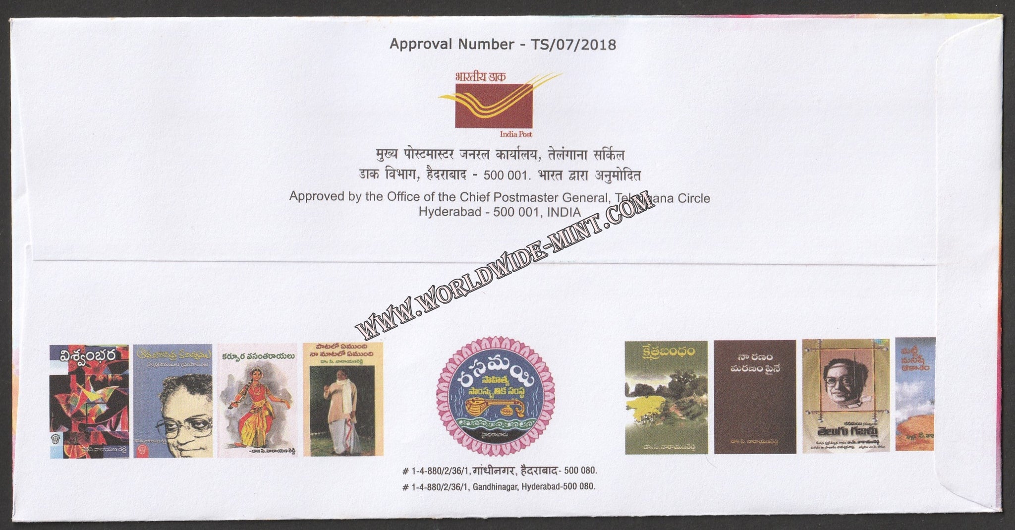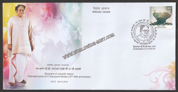 2018 Recipient of Jnanpith award, Padma Bhushan Dr. C. Narayana Reddy's 87th Birth anniversary Special Cover #SPL-528