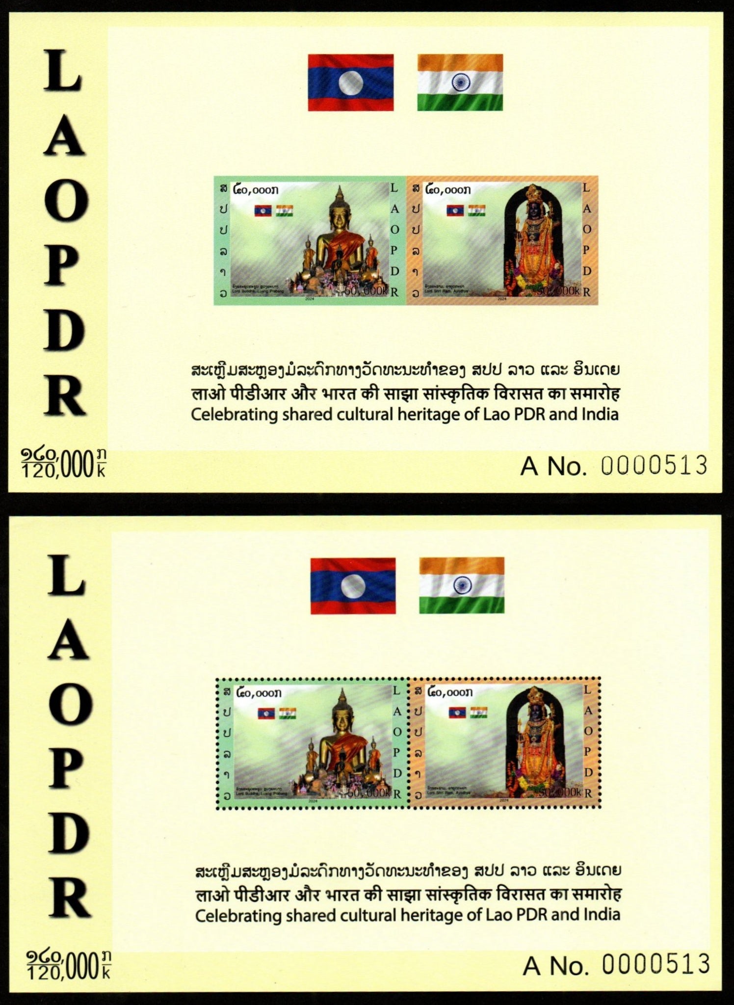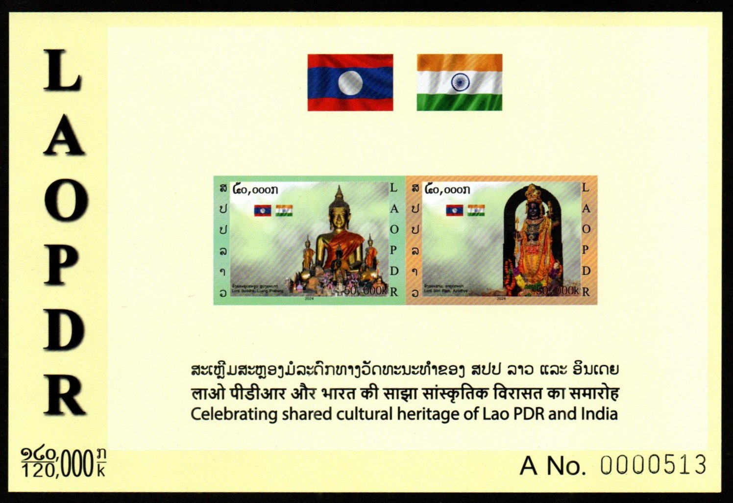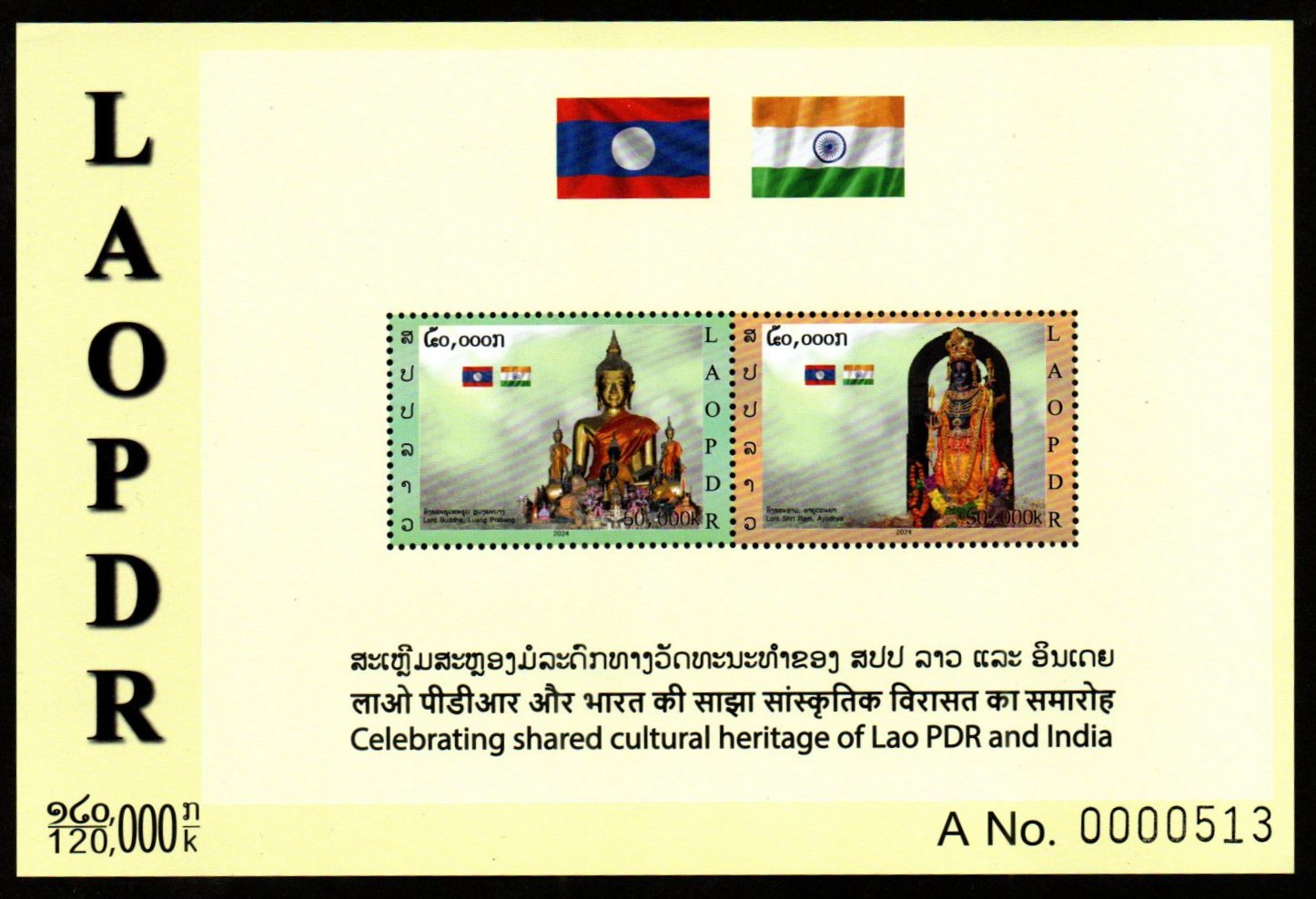 2024 Laos PDR Celebrating shared Cultural Heritage of India & laos (Lord Shri Ram & Lord Buddha) Miniature Sheet MS Perf & Imperf Set of 2 #M-47