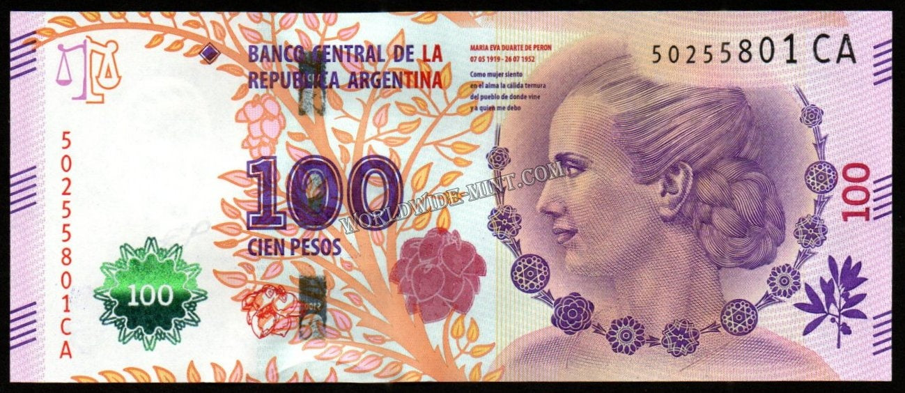 Argentina 100 Pesos 2016 CA Series UNC Banknote N#206729