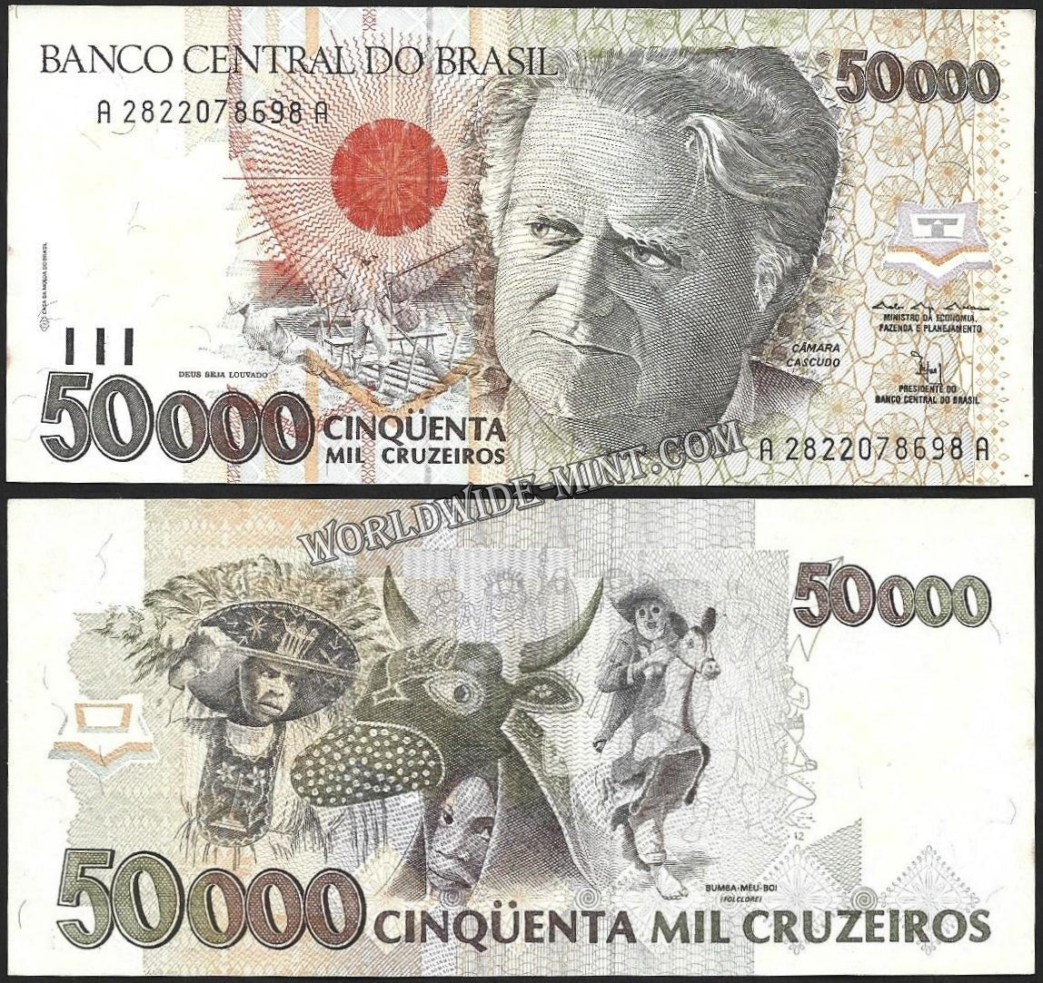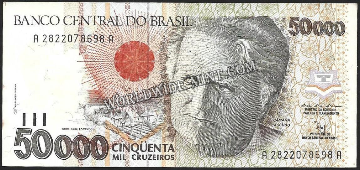 BRAZIL 1991-1993 - 50000 CRUZEIROS UNC CURRENCY NOTE #CN181