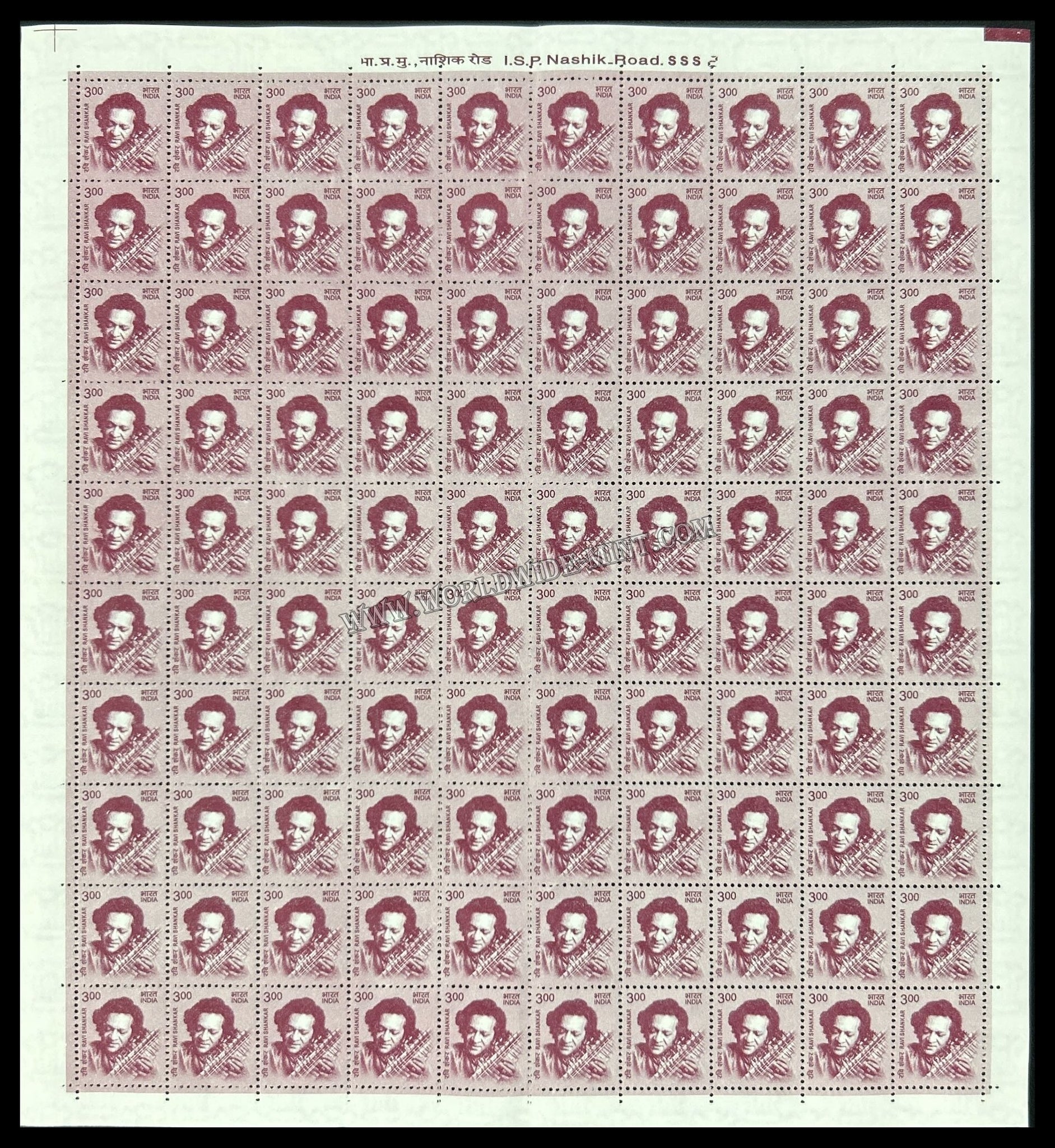 INDIA Ravi Shankar 11th Series(3 00 ) Definitive Full Sheet of 100 Stamps MNH