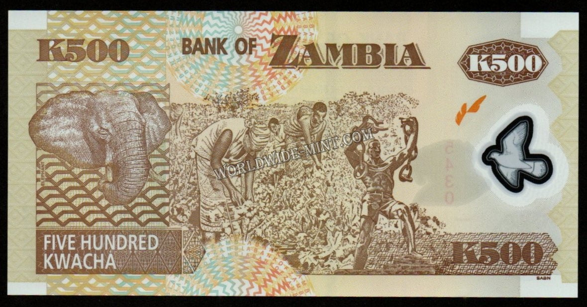 Zambia 500 Kwacha 2008 P-43f Polymer UNC Banknote N#204110